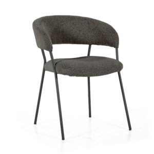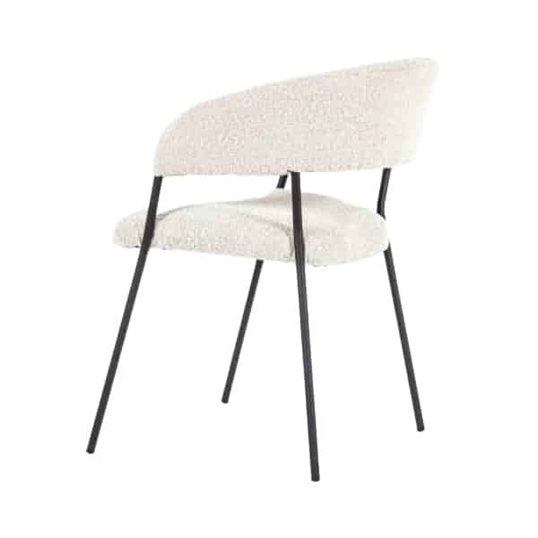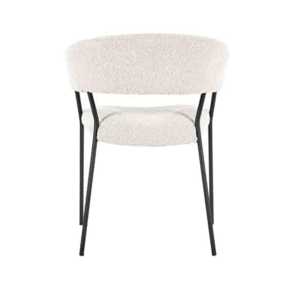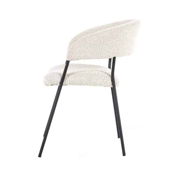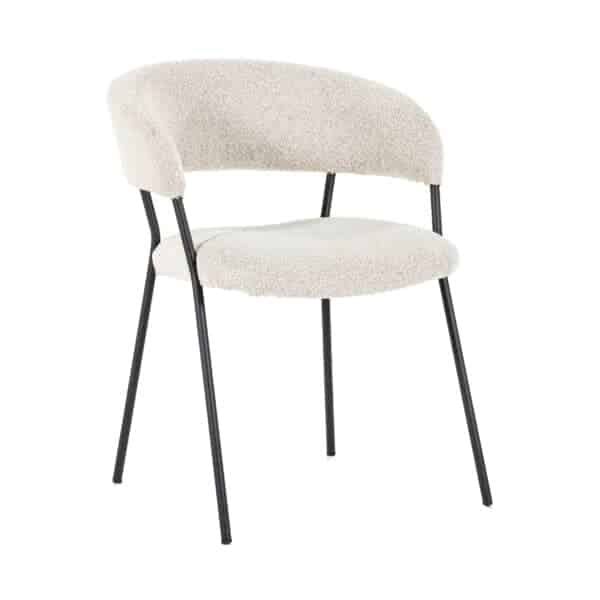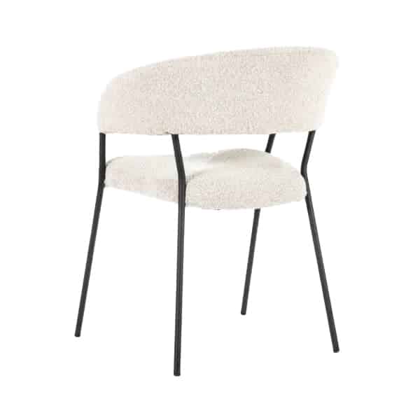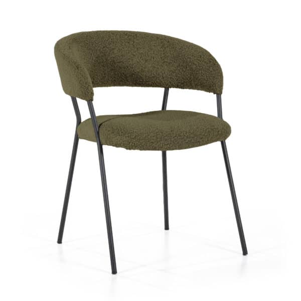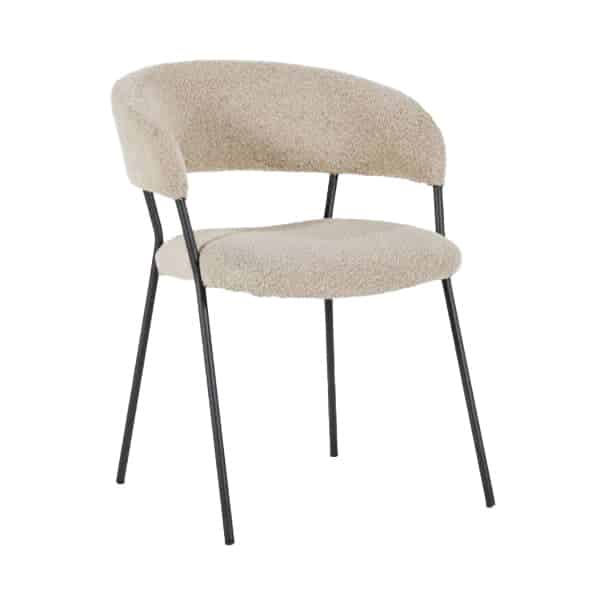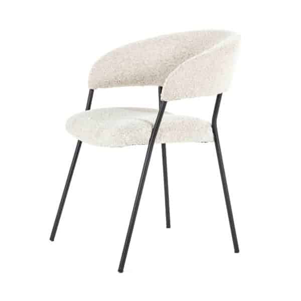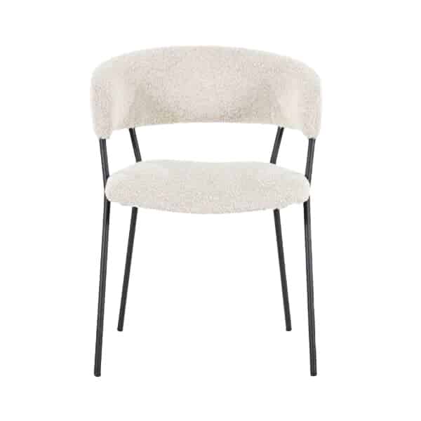 Armstoel Luka met zijn moderne design en comfortabele zit heeft ook een retro tintje. Het metalen frame is de verbinding tussen de rugleuning en zitting. De rugleuning loopt met zijn ronde vorm over in de armleuningen. De zitting en rugleuning zijn beide gestoffeerd in een teddy stoffering in vier verschillende kleuren.